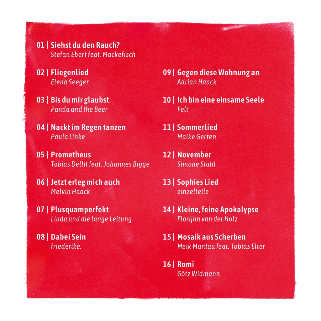 „Wir singen nur, weil da ein Feuer ist“ heißt es in Tobias Dellits Lied „Prometheus “ und um seine Zeilen haben sich 15 weitere Liedermacherinnen und Liedermacher gesetzt und besingen ein Feuer das sanft, lodernd, schmerzerfüllt und zugleich leidenschaftlich wärmend in unseren Herzen brennt.